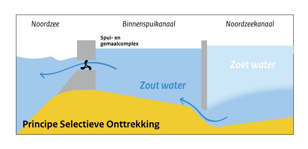 Middels deze constructie zal er via een opening het zoute water terug naar zee terugstromen. Het zoete water wordt tegengehouden en blijft in het Noordzeekanaal.